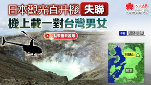 日本警方稱,有消息稱一架觀光直升機今天(1月20日)在熊本縣阿蘇山附近失聯,機上或共載有3人。