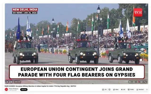 其中,已经到访印度的欧盟委员会主席冯德莱恩,不仅于今天(26日)和印度总理莫迪一起观看了印度的共和国日阅兵,而且在她的带领下,欧方也派人加入到了这场印度的阅兵活动中。印度媒体则以“罕见”一词形容了欧盟和印度双边关系中的这一“高光”时刻。