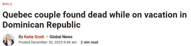 一对来自魁北克加蒂诺(Gatineau)的夫妇在多米尼加共和国度假期间被发现死亡,其家属对当地官方给出的死因提出质疑。