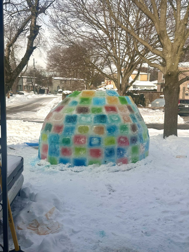 来自怡陶碧谷(Etobicoke)的 Cristina Campbell 分享了一张她亲手搭建的雪屋(igloo)照片。她花了几天几夜时间,用双手一点点堆砌完成。
