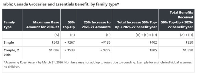 政府将推出全新的 “加拿大食品与生活必需品补助”(Canada Groceries and Essentials Benefit),即现有GST退税 的升级版。