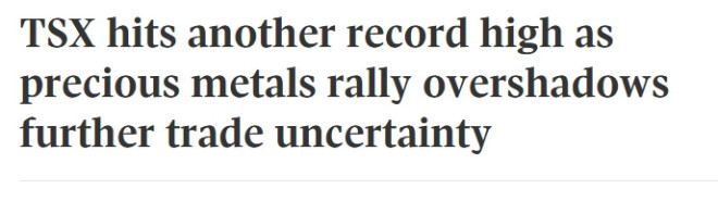 加拿大主要股指周一开盘创下历史新高,在贵金属价格持续飙升的带动下,矿业股领涨,抵消了美国总统特朗普威胁对加拿大征收100%关税所带来的贸易不确定性影响。