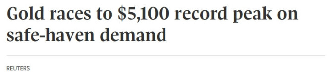 金价飙升至每盎司5,100美元以上的历史高位,带动金矿股早盘上涨。市场避险情绪依然浓厚。在国际政治紧张局势加剧的背景下,投资者纷纷涌向避险资产;与此同时,白银和铂金也同步创下历史纪录。