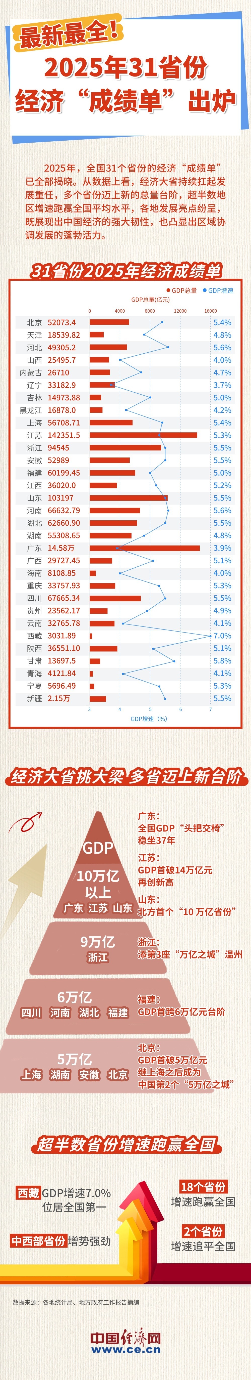 【图解】最新最全!31省份经济“成绩单”出炉 18省增速领跑全国 华侨网 2026年1月29日 0:56 文案:杨淼 设计:石兰 校对:景远 审核:张厚为 (责任编辑:符仲明) 免责声明:本文仅代表作者个人观点,与华侨网无关联。其原创性及文中陈诉内容未经本网证实,对本文内容、文字的完整、真实性,以及时效性本网部作任何承诺,请读者自行核实相关内容。如发现稿件侵权,或作者无意愿在华侨网发布文章,请版权拥有者通知华侨网处理。