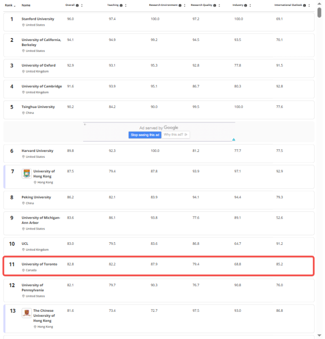 这意味着,多伦多大学早已不只是“加拿大第一”,而是真正迈入了全球学术第一梯队。
