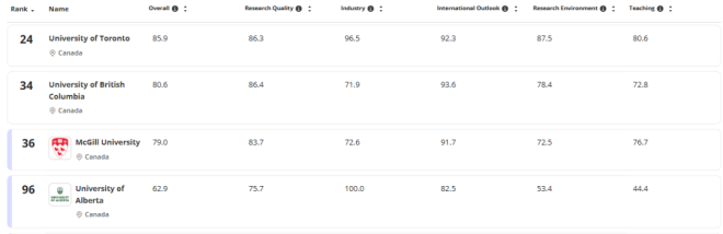 • 阿尔伯塔大学(全球第96,加拿大第4)