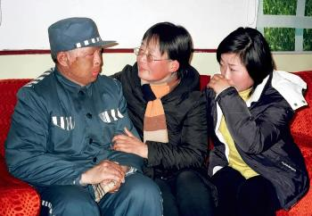 ▲王進東的妻子、女兒在鄭州監獄探望王進東