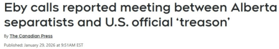 針對外界傳言稱阿省部分分離主義人士曾前往華盛頓,與美國政府官員會面,BC省省長尹大衛(David Eby)在渥太華公開表示,這種行為“等同於叛國”。據悉,尹大衛是在出席聯邦—省長會議前接受媒體採訪時作出上述表態的。