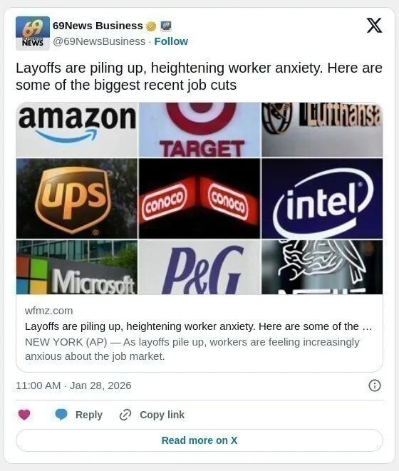 其他近期裁员企业还包括:通用汽车、派拉蒙影业、Target、康菲石油、汉莎集团等,涉及从数千到数万岗位不等。