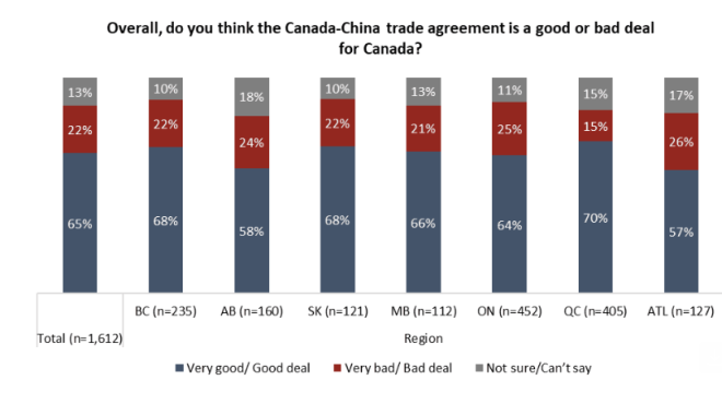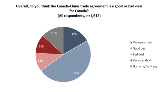 非营利机构安格斯里德研究所(Angus Reid Institute)的最新数据显示,加拿大人和政府一样,比近年更加开放地看待与中国的经济合作机会。
