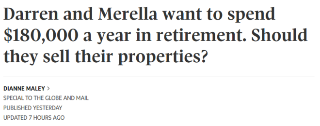 - 退休后的开支目标设定为每月1.5万加元(每年18万加元)——与目前的税后收入相同,但明显高于他们现在的实际支出。