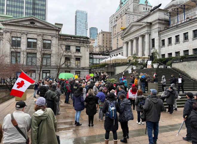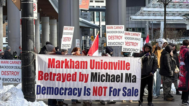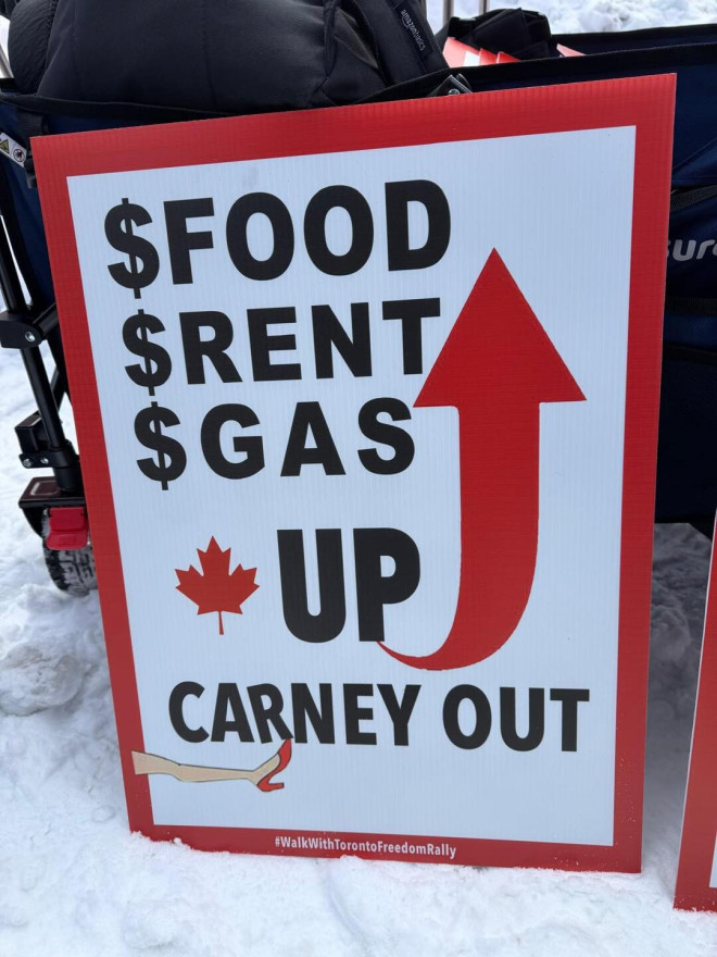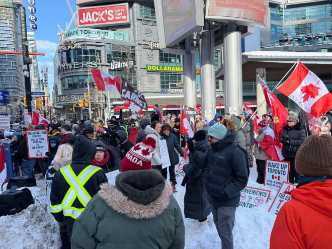 周六,一场针对联邦自由党少数政府及总理卡尼的抗议活动在多伦多及全国多地同步举行。