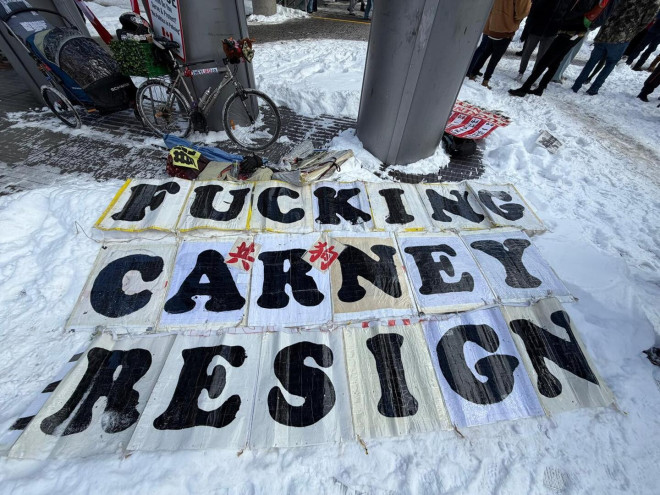 组织者称,尽管气温严寒,仍有示威者走上街头,高喊“Carney Must Go”等口号。根据活动页面信息,全国共有28个城市出现类似集会。