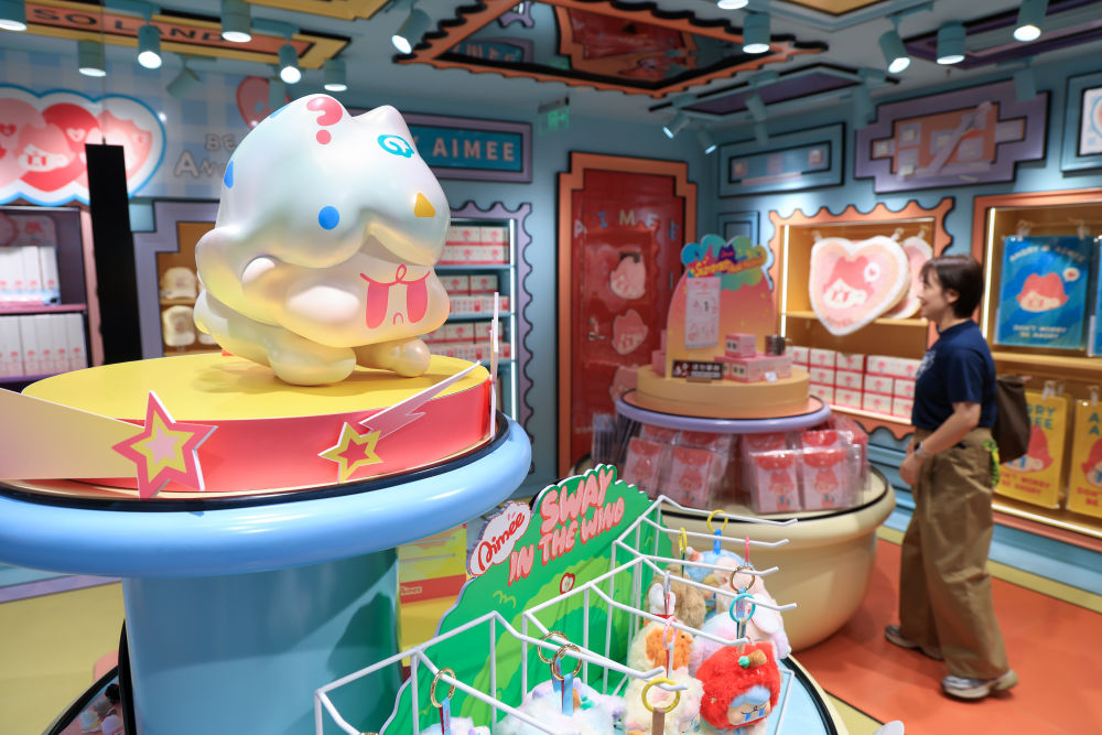 2025年10月28日,在广州的名创优品MINISO LAND(城市乐园店),顾客选购原创IP潮玩产品。新华社记者 毛思倩 摄