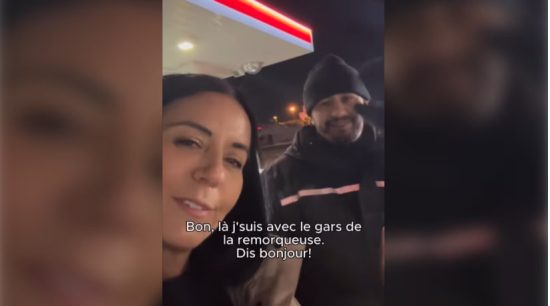 在視頻中,費拉妲對著鏡頭解釋,她的車在Notre-Dame街撞到「兩個坑」,導致兩個輪胎都爆破。