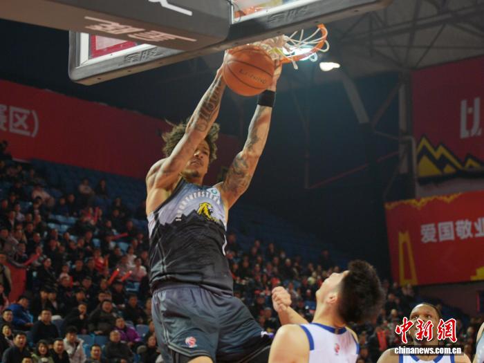2月2日晚,吉林长春,吉林队外援威尔逊在比赛中暴扣得分。 记者 张瑶 摄