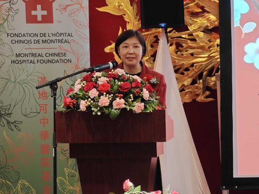 【時報訊】1月31日,駐滿地可總領館王紅副總領事應邀出席滿地可中華醫院基金會春節聯歡晚會並致辭。魁北克省國民議會副議長本傑明、寶樂莎市市長艾斯阿德、衛生部長政治顧問文森特、華僑華人、當地友人等上百人出席活動。