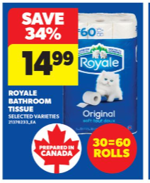 30卷厕纸$14.99($0.5/卷)!
