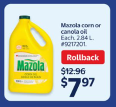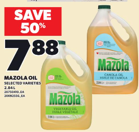 2.84L菜籽油、葵花籽油半价$7.88!