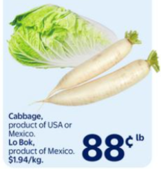 白萝卜、大白菜$0.88/lb!