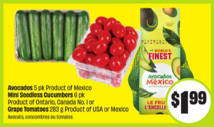 牛油果、小番茄、水果黄瓜$1.99!