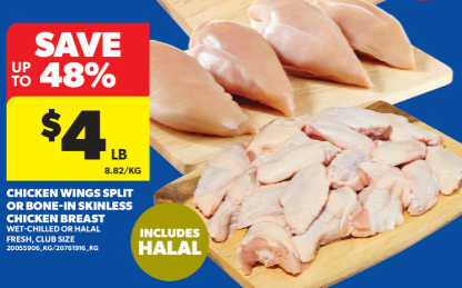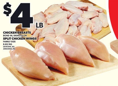 鸡翅、带骨鸡胸肉$4/lb!