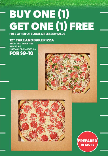 12英寸披萨(带回家烤)买一送一,