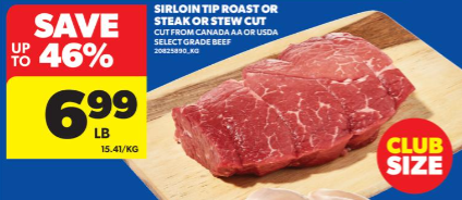 后臀尖牛肉$6.99/lb,