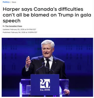 哈珀認為,加拿大目前的許多困難,並不是因為美國怎麼了,而是源於政府內部糟糕的決策。他毫不客氣地指出,2015 年之後,他執政時期取得的許多成果都被“扭轉或揮霍”了,導致現在的加拿大“更加虛弱和分裂”。