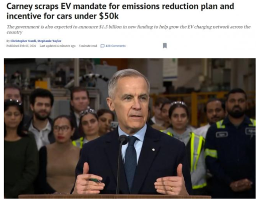 正如我們昨日的報道,加拿大總理馬克·卡尼(Mark Carney)今早(2月5日)宣布,聯邦政府將正式取消自由黨前任政府實施、長期備受爭議的電動車銷售強制政策,改以更嚴格的汽車尾氣排放法規取而代之,同時推出針對售價低於5萬加元電動車的新購車補貼措施。