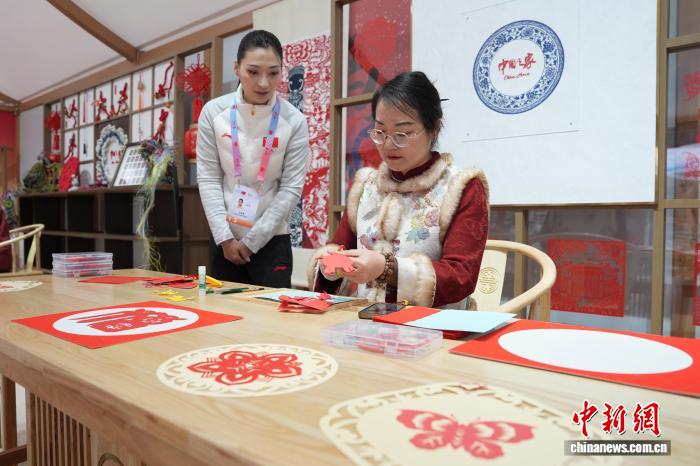 当地时间2月4日,适逢“立春”,米兰冬奥会“中国之家”在意大利米兰克莱里西庄园正式敞开大门。图为非遗传承人在非遗体验区展示剪纸。 记者 蒋启明 摄