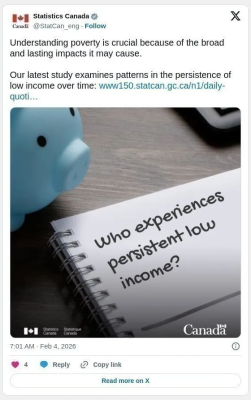 加拿大統計局近日發布的一項最新研究顯示,在2016年至2022年為期七年的追蹤數據中,加拿大部分群體–如單親母親家庭、未完成高中學歷的人士更容易陷入“持續性低收入”狀態,反映出社會貧困問題的結構性特徵。