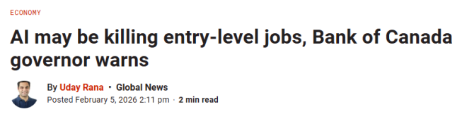 首页 加国新闻 加拿大央行行长警告: AI正在消灭入门级岗位! 年轻人越来越难!