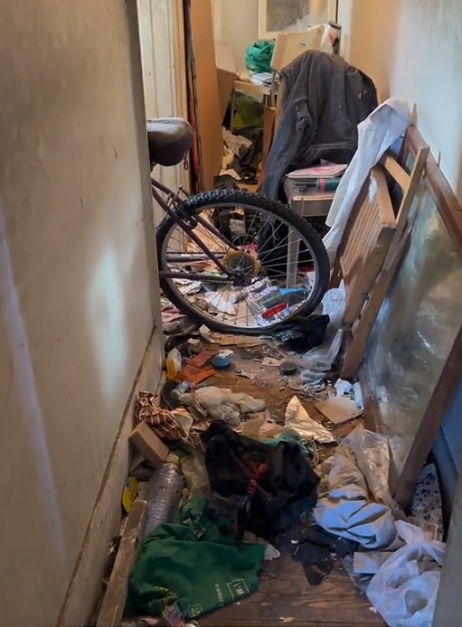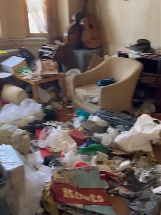 租客年轻时很漂亮,而现今却成了这个样子。被租客清理出一车垃圾后,屋子仍然惨不忍睹。