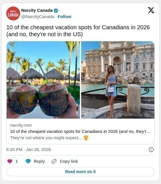 值得注意的是,榜单中没有任何一个目的地位于美国,这对近年来选择避开南方邻国、转而探索其他地区的加拿大人来说无疑是个好消息。