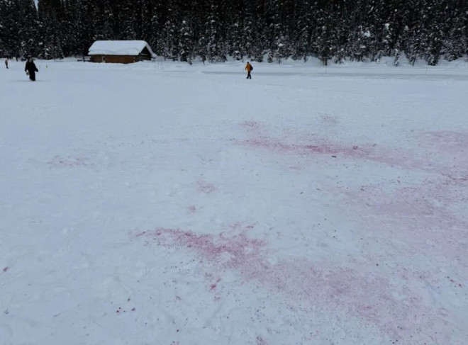 這名加州遊客在帖文中稱,她在完成雪鞋徒步後,發現冰雪上出現大面積粉色痕跡,以及散落各處的小型金屬亮片。