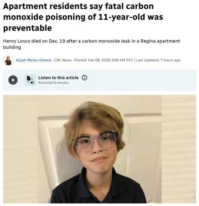 11岁的亨利·洛斯科 (Henry Losco)在数小时后因一氧化碳中毒身亡。