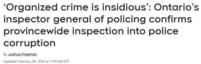 安省警务监察长周一确认,将启动一项全省范围的独立警务腐败审查。此前,约克区警局上周公布“南方行动”(Project South)的调查结果震动全省,已有致8名现职及退休的警员被控罪名。
