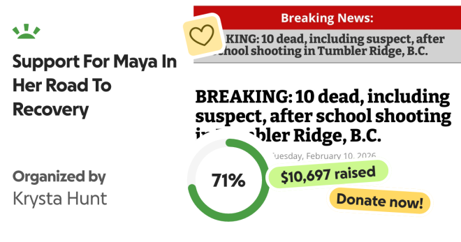截至周三早上,这项GoFundMe募捐已筹得10,000加元。