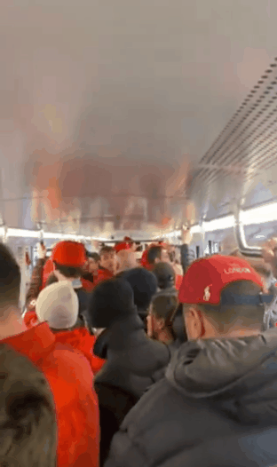 周二,男子冰球队的球员们搭乘米兰地铁出行,和其他通勤者与体育迷一样,挤在拥挤的车厢和车站里。