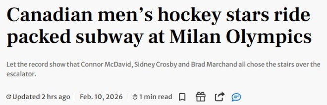 有趣的是,球星Connor McDavid、Sidney Crosby和Brad Marchand都选择走楼梯而不是乘扶梯。《星报》未能确认他们是否刷了Presto卡进站。