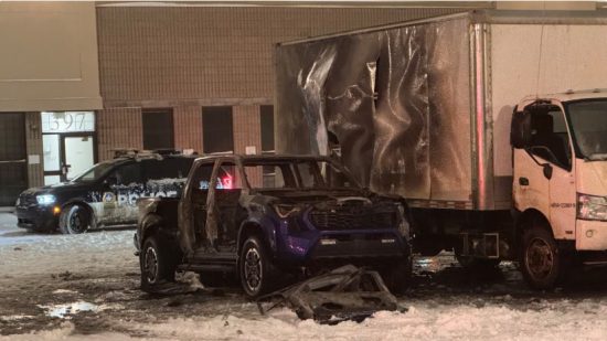 【時報專訊】二月十日週二深夜滿市聖羅倫區發生一起可疑火災,有兩輛車受損。滿市警方於晚上十時接獲911報警電話,聲稱Lebeau大道發生火災。