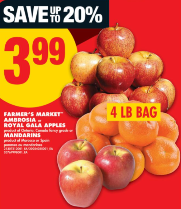4lb苹果、橘子$3.99,