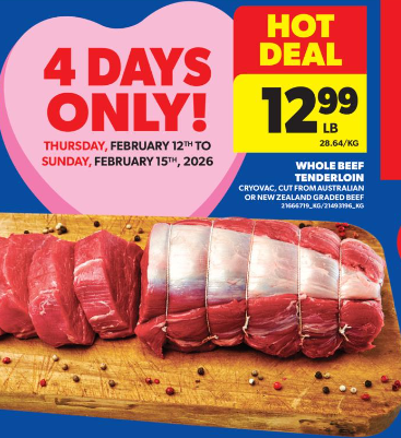 整条牛柳$12.99/lb!