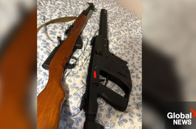 案发现场发现一支长枪和一把改装手枪。目前仍在调查枪支是否合法取得及其所有人身份。