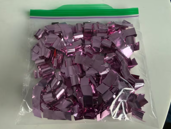 她还分享了一张照片,展示他收集到的金属亮粉——数量足以装满一个塑料三明治袋。