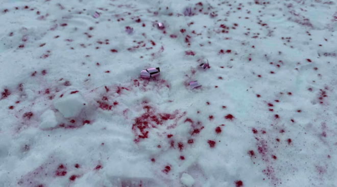 她在2月1日发布的帖子中写道:“我在周六下午2点30分左右到达路易斯湖,注意到冰面上有一大片粉色区域,还看到一些金属质感的小彩纸屑。我立刻就知道那是什么。”