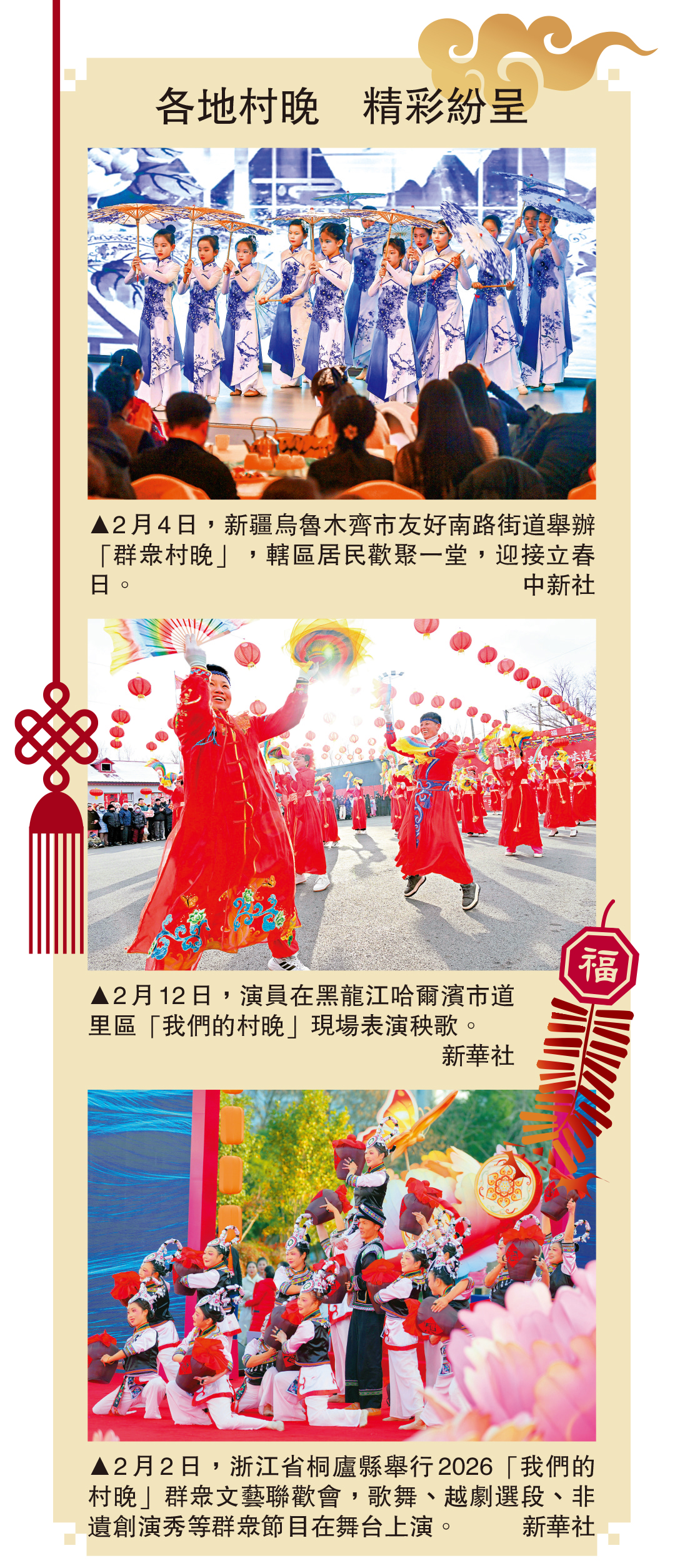 連日來,2026年全國「四季村晚」示範展示活動在全國多地展開,鄉土文藝與千年年俗共同激盪出鄉村振興的時代活力。