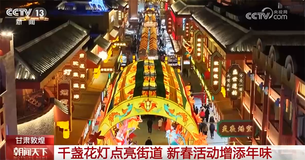 甘肃敦煌:千盏花灯点亮街道 新春活动增添年味