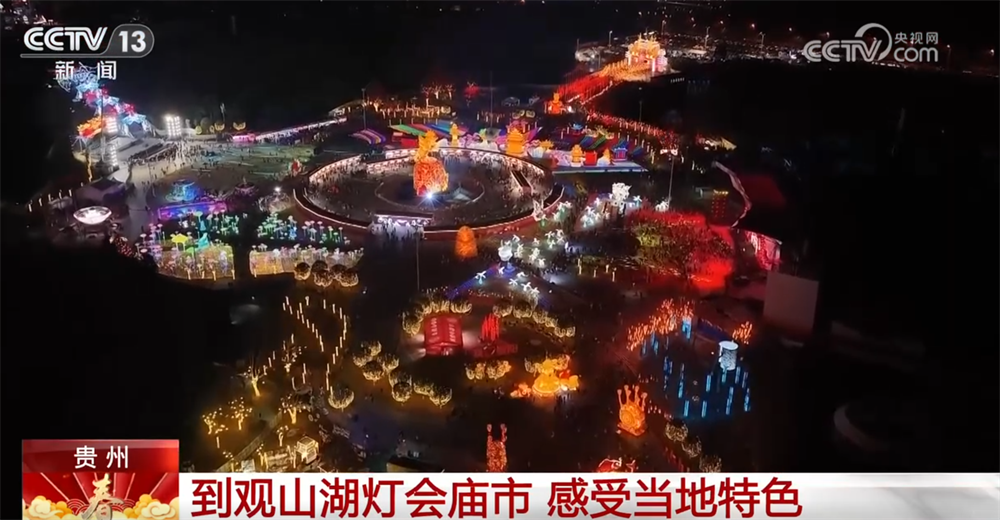 假期期间,各地的年味浓郁。接下来,我们再跟随镜头到贵州贵阳观山湖公园民族大联欢广场去,看看那里别具特色的灯会庙市。